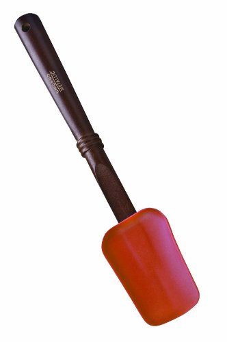 Chicago Metallic Baking Essentials is a new line that is sure to complement the best bakeware. With its modern, dark-stained wooden handles, stainless steel accent pieces and high grade silicone heat-resistant up to 500-Degree, these essentials are a key ingredient to any baker's recipe. This large silicone spoonula has a dark wood handle and measures 11-3/4-inch long by 2.3-inch wide. Hand wash to extend the life of the product.