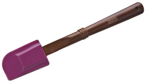 Chicago Metallic Baking Essentials is a new line that is sure to complement the best bakeware. With its modern, dark-stained wooden handles, stainless steel accent pieces and high grade silicone heat-resistant up to 500-Degree, these essentials are a key ingredient to any baker's recipe. This large silicone spatula has a dark wood handle and measures 11-3/4-inch long by 2-inch wide. Hand wash to extend the life of the product.